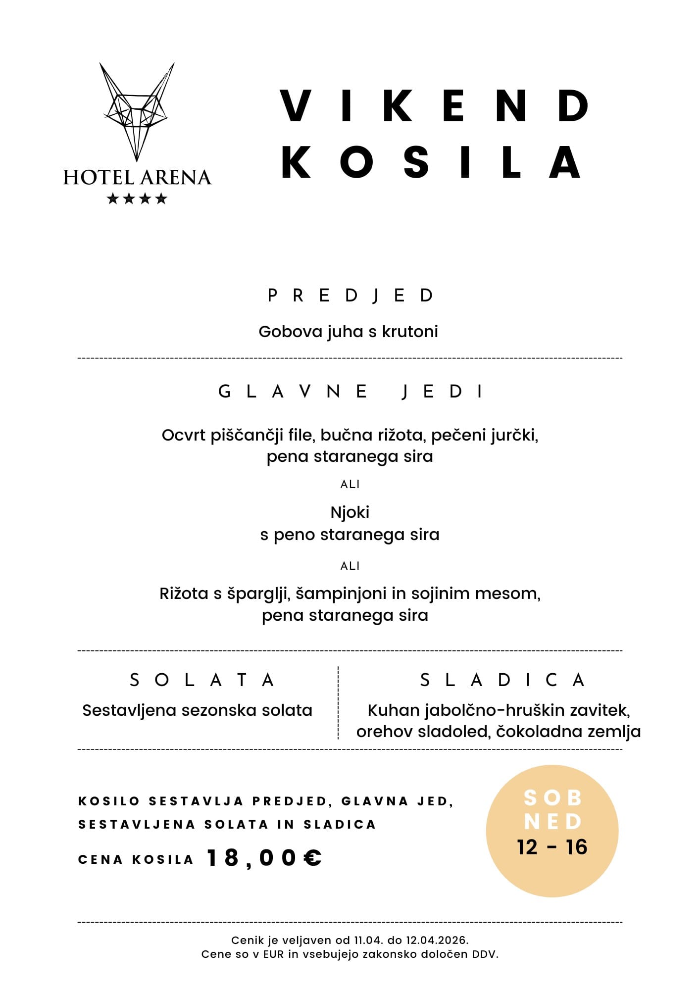 Vsak vikend (sobota, nedelja) od 12.00 do 16.00